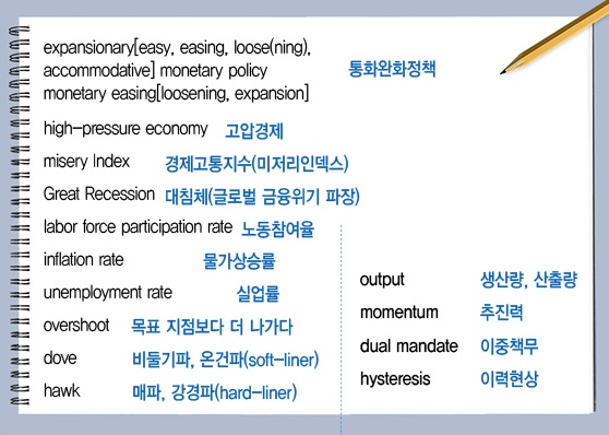 블룸버그의 설명대로 고압경제는 고용을, 저압경제는 인플레이션을 더 중시한다.1편에서 본 대로 고용안정과 물가안정은 Fed의 양대 정책목표다. 이를 흔히이중책무(dual mandate)라고 한다고 했다. Fed의 통화정책결정기구인 연방공개시장위원회(FOMC) 내에서 고용안정을 더 중시하는 쪽을비둘기파(dove)라고 한다. 이들은 Fed가 종전대로 저금리 기조를 유지하는 통화완화정책으로 경기를 부양해야 한다고 주장한다. 반면 인플레이션에 민감한매파(hawk)는 통화완화정책이 심각한 물가상승을 초래할 수 있다며 기준금리 인상을 촉구하고 있다. 비둘기파는온건파(soft-liner), 매파는강경파(hard-liner)라고도 한다.