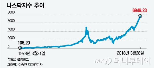 미국 뉴욕증시 기술주 지표인 나스닥지수는 1995년 7월 사상 처음 1000선을 돌파하고 1998년에는 2000선마저 뛰어넘었다. 2000년 3월 당시 역대 최고치인 5048.62에 도달하기까지 나스닥의 폭주는 거침없었다. 하지만 이때부터 시작된 내리막은 오르막보다 훨씬 가팔랐다. 지수는 30개월 새 78% 추락하며 1000선으로 되돌아갔다. '닷컴버블'이 터진 것이다.