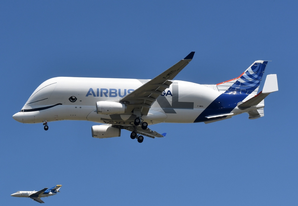 돌고래 형상 본뜬 벨루가XL "현존하는 최대 비행기" 초대형 항공기 부품 싣는 데 사용