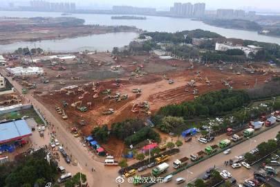 우한시 우한화신산의원 신축병원 건설현장에서는 1000여명의 건설 노동자들이 일을 하고 있다는 보도가 나온다. 이 병원은 최대 1000개의 병상으로 지어지고 있으며 다음달 2일 군에 인계된다. 현장에는 굴착기, 불도저, 지반차 수십 대가 밀집해 공사를 진행하고 있다.