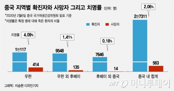 현재 우한의 치명률은 4.09%로 전날 4.33%보다 소폭 감소했다. 중국내 치명률은 2%로 큰 변동이 없다.