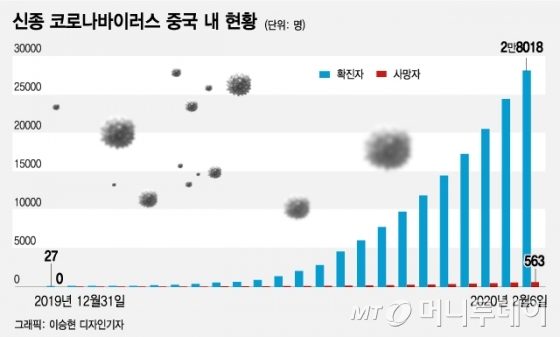 중국 국가위생건강위원회(위건위)는 6일 0시 현재 전국 31개 성에서 신종 코로나 누적 확진자는2만8018명, 사망자 563명이라고 발표했다.