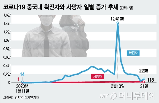 또 중국 당국은 코로나19로 확진된 이들을 21일 통계에 일괄 반영해 혼선이 빚어지기도 했다.
