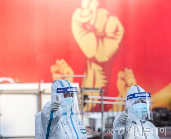 ![[우한=신화/뉴시스]12일(현지시간) 중국 후베이성 우한에서 체육관을 개조해 만든 신종 코로나바이러스 감염증(코로나19) 임시 병원에서 의료진이 엄지손가락을 치켜들어 서로를 격려하고 있다. 후베이성 위생건강위원회는 "13일 0시 기준 사망자가 242명 늘어 총 1310명”이라고 밝혔다. 2020.02.13.](https://thumb.mt.co.kr/cdn-cgi/image/f=avif/21/2020/02/2020022711030305115_1.jpg)