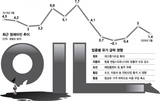 홍성욱 산업연구원 동향분석실장도 “코로나19 사태와 유가 하락이 함께 온 상황”이라며 “단기적으로 한국의 어떤 산업이 유가 하락 혜택을 본다고 말하기 어렵다”고 말했다.