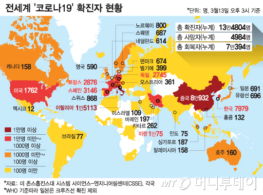 13일 홍콩 사우스차이나모닝포스트(SCMP)에 따르면 미국 메릴랜드대 연구팀은 최근 랜싯의 논문 선공개 사이트인 SSRN에 "코로나바이러스가 특히 북위 30도에서 50도에 위치한 국가들에서 집중적으로 일어났다"고 전했다. 발병 진원지인 중국과 한국, 일본, 이란, 이탈리아 등이 모두 중위도에 위치해 있다.