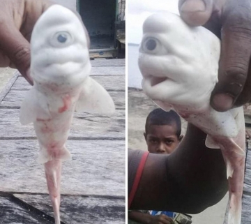 어부들은 내장을 제거하기 위해 어미 상어의 배를 갈랐을 때 새끼 상어 세 마리를 발견했다. 그중 한 마리의 눈은 하나였고 온몸은 우윳빛처럼 하얀색이었다.