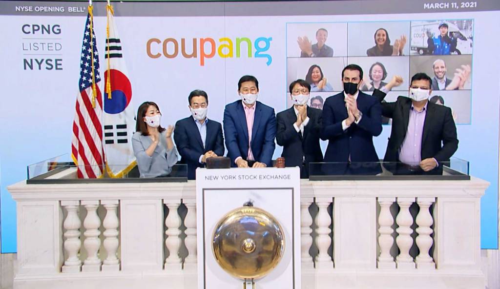 쿠팡의 공모가는 당초 목표 밴드였던 주당 32달러~34달러를 상회하는 35달러로 정해졌는데, 이날 시장에서 59.60달러에 거래를 시작했다. 장중 주가가 69달러를 찍었으나 매물이 나오면서 장 막판 상승폭이 줄었다.