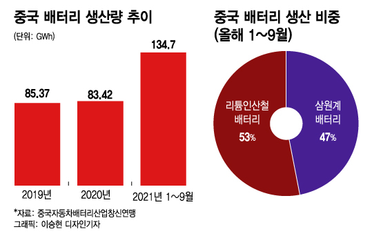 중국 전기차 시장 확대로 배터리 시장도 급성장했는데, 특히 CATL, BYD 등 중국 배터리업체가 주력으로 밀고 있는 리튬인산철(LFP) 배터리 비중이 커졌다.