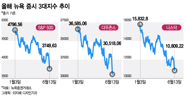 문제는 최악의 인플레이션(화폐가치 하락에 따른 물가 상승)을 잡기 위해 세계 각국 중앙은행이 금리를 올리는 긴축에 나서면서 증시 바닥이 멀었다는 경고가 잇따르는 것이다. 어떤 성향의 투자자라도 손해가 막심한데 더 참고 기다려야 할지, 지금이라도 주식을 처분해 손실을 줄여야 할지 판단하기 쉽지 않다. 월가 전문가들의 조언을 통해 증시가 하락 국면에 접어 들었을 때 공포를 이겨내는 전략을 짚어봤다.