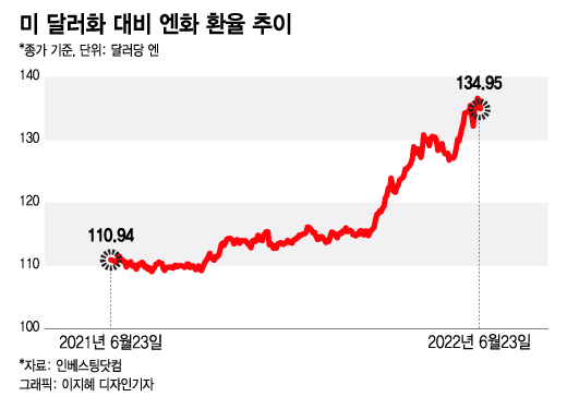최근 일본 엔화 환율 움직임이 심상치 않다. 지난 22일 도쿄 외환시장에서 미 달러화 대비 엔화 환율은 136.6엔 수준까지 하락해 1998년 아시아 외환위기 이후 24년 만에 최저 수준을 기록했다.