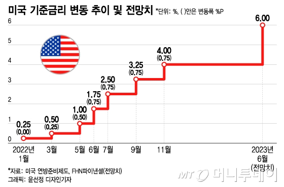 FHN파이낸셜의 짐 보겔 대표는 월스트리트저널(WSJ)에 "많은 것들이 한꺼번에 닥치고, 서로 다른 방향으로 끌어당길 수 있다는 것이 금융시장의 딜레마"라며 "연준이 12월 인상 속도를 늦추겠지만 결국 내년 6월 금리를 6%까지 올릴 것"이라고 말했다. 현재 미국의 기준금리가 15년 만에 최고 수준인 3.75~4.0%이니, 12월 포함 향후 7개월 동안 금리를 최대 2%포인트 올릴 수 있다는 얘기다.