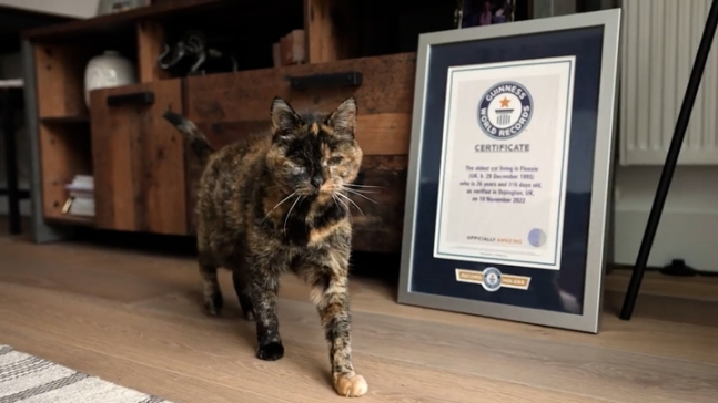 기네스북 세계기록은 24일(현지 시각) 영국 런던에 사는 암컷 고양이 플로시(flossie)가 생후 26세 329일로 생존해있는 최고령 고양이에 올랐다고 밝혔다.