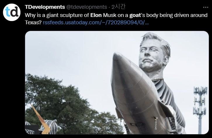 이들은 머스크 CEO를 '역대 최고의 인물'(Greatest Of All Time·GOAT)이라고 생각해 암호화폐 이름을 '일론GOAT'라고 지었고, 해당 암호화폐를 홍보하고자 60만 달러(약 8억280만원)를 들여 6t짜리 머스크 CEO 동상을 제작했다고 설명했다.