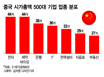 특히 2차전지 업체가 속해 있는 전력설비 업종은 매년 중국 시총 500대 기업에 포함된 기업이 늘고 있다. 식음료 업종 역시 중국인들이 즐기는 우량예, 양허주식 등 바이주업체와 칭다오맥주가 포함되면서 29개사가 중국 시총 500대 기업에 진입했다.