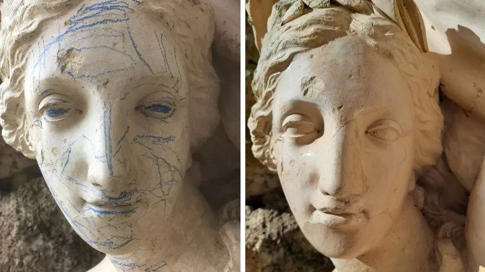 23일(현지 시각) 영국 BBC에 따르면 우스터셔주 우스터에 있는 '크롬 코트' 박물관에 있는 230년 된 조각상이 지난 8일 낙서로 훼손됐다.