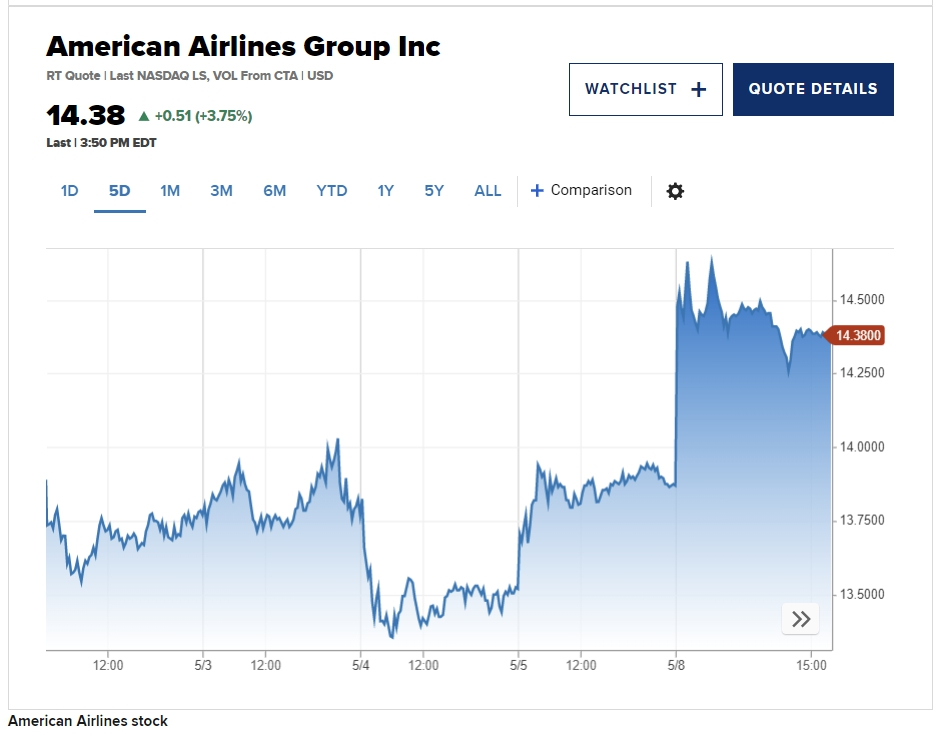 JP모건은 항공업 전망이 좋고 그 중에서도 아메리칸항공을 사야 한다며 투자등급을 중립에서 비중확대로 상향했다. JP모건은 아메리칸과 델타, 유나이티드 등 빅3가 장기적으로 구조변화를 이끌어 유망하다고 평가했다. 이날 아메리칸항공은 3.53% 상승했다.