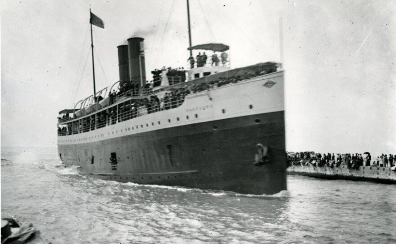 1902년 미시간주에서 만들어진 이스트랜드호는 당시 오대호에서 여객선 겸 화물선으로 맹활약했다.