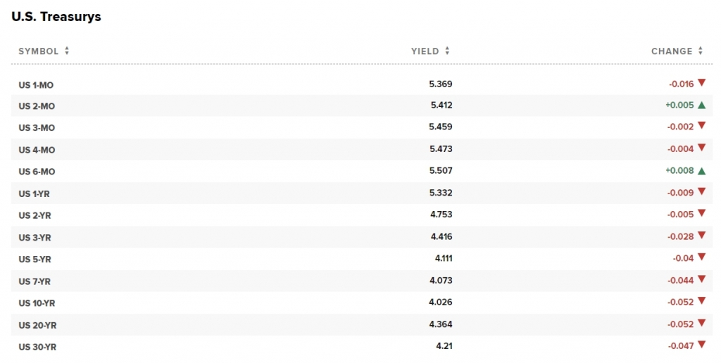 네드 데이비스 리서치의 조셉 칼리쉬는 "국채 수익률이 역사적 고점은 아니지만 여전히 매수할 가치가 있다"며 "1953년 이후 10년 만기 국채 수익률은 평균 5.5%, 5년 만기 국채 수익률은 평균 5.3%였다"고 되짚었다. 이날 10년 만기 국채 수익률은 4.026%를, 5년 만기 국채 수익률은 약 4.113% 수준에서 거래되고 있다.