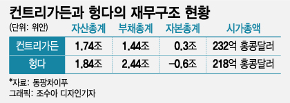 반면 헝다는 부채가 자산보다 많은 자본잠식 상태다. 헝다의 총부채는 2조4400억위안(439조원)로 총자산(1조8400억위안, 331조원)보다 6000억위안(108조원) 많다. 자본은 -6000억위안(-108조원)으로 완전 자본잠식상태다. 어떻게 해도 답이 안 나온다. 컨트리가든과 헝다의 처리과정이 다를 수밖에 없다는 얘기다.