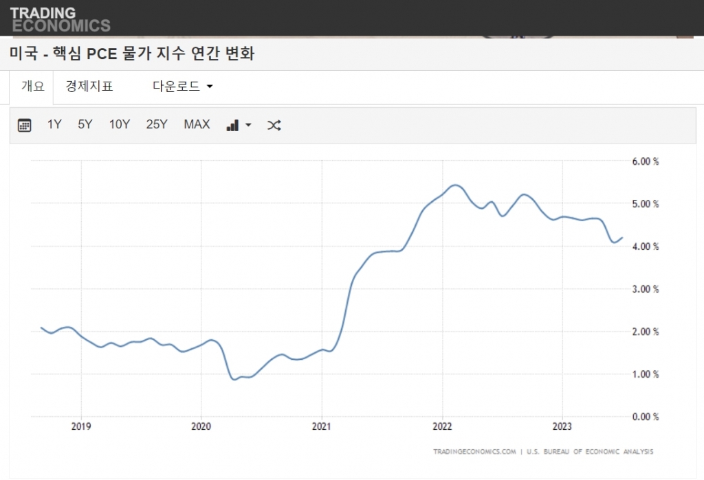 이날 미국 상무부는 7월 헤드라인 PCE 상승률은 3.3%, 변동성이 큰 에너지와 식료품을 제외한 근원(Core) PCE 상승률은 4.2%를 기록했다고 밝혔다.