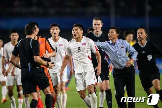 북한은 당시 경기에서 일본의 결승골이 된 페널티킥(PK) 판정에 대해 거칠게 항의했다. 북한 선수들은 경기 종료 후 심판의 목을 밀치는 등 폭력적인 행동을 보였다.