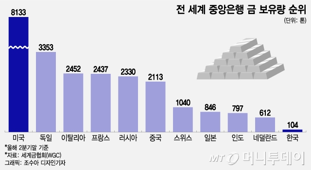지난 3분기 전 세계 중앙은행은 분기 기준 역대 세 번째로 많은 337t(톤)의 금을 사들이며 금 보유량을 계속 늘렸다. 올 들어 9월까지 전 세계 중앙은행이 매입한 금은 800t에 달한다. 작년 동기 대비 14% 증가한 수치로 사상 최대 규모다.