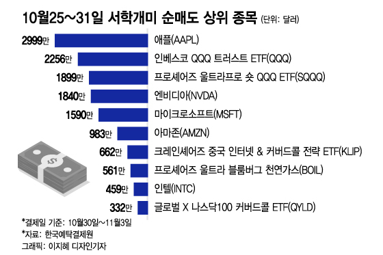 한국예탁결제원에 따르면 서학개미들은 지난 10월25~31일 사이에 미국 증시에서 1억2775만달러를 순매수했다.(결제일 기준 10월30일~11월3일)