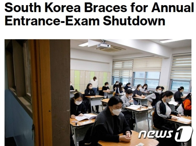 15일(현지 시간) 미국의 블룸버그통신은 수능이 수험생들에게 중요한 날인 만큼, 사회적으로 수험생 편의를 위한 여러 조처를 한다고 설명했다.