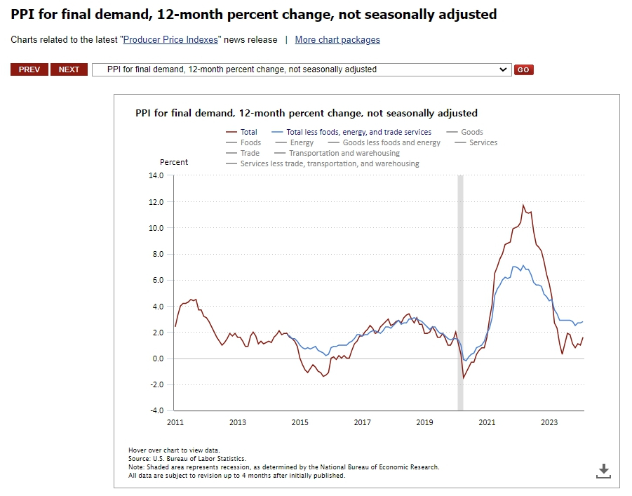 PPI는 공급망 초기에 비용을 나타내기 때문에 인플레이션의 선행 지표로 간주된다. 노동부는 헤드라인 PPI 상승의 약 3분의 2 비중이 상품가격 급등(1.2%)에서 비롯됐다고 보고했다. 이틀 전 발표된 소비자물가지수(CPI)의 상승처럼 에너지 가격의 상승이 도매가 상승에도 영향을 적잖게 미친 것으로 지적된다.