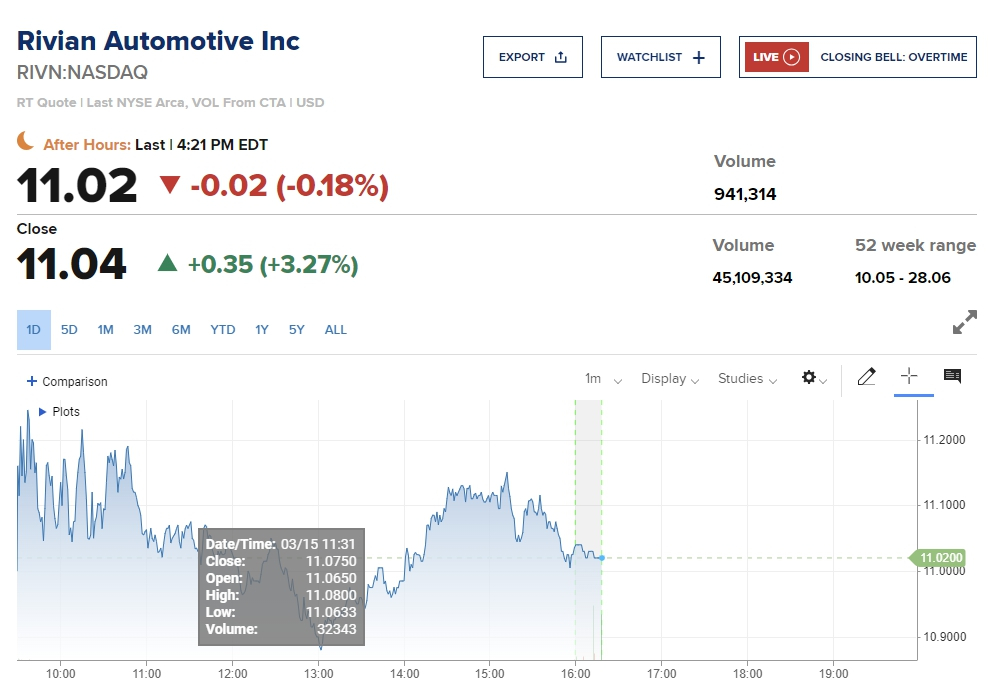 전기차 제조사인 리비안에 대해 증권사 파이퍼 샌들러가 투자의견을 비중확대로 상향했다. 목표가격도 15달러에서 21달러로 올리면서 이날 주가는 3.27% 상승했다. 파이퍼 샌들러는 리비안의 신제품 출시와 자본지출 연기결정에 대해 낙관적으로 밝혔다.