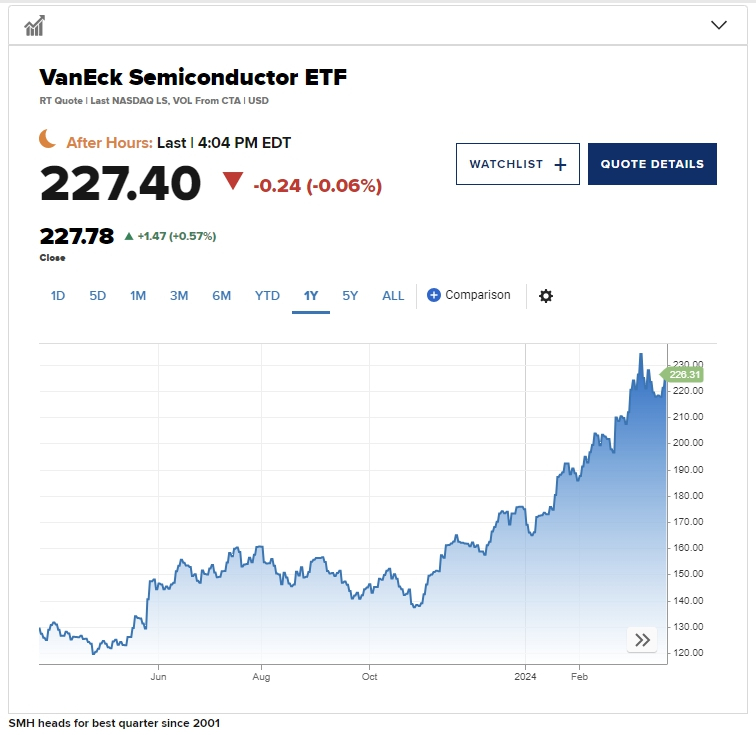 하지만 금리인하 여부와 관계없이 반도체 업종은 턴어라운드 기대감으로 2001년 이후 최고의 분기를 기록하고 있다. 특히 대표적인 상장지수펀드인 'the VanEck Semiconductor ETF'는 올들어 170달러 수준에서 230달러대까지 치솟아 약 30% 오르면서 투자자들의 기대감을 반영하고 있다.