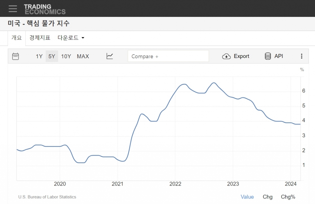 변동성이 높은 식품과 에너지를 제외한 근원 CPI는 전월비 0.4%, 전년비 3.8% 상승했다. 전망치가 0.3%, 3.7%였던 것을 감안하면 이 역시 예상을 웃돈 셈이다.