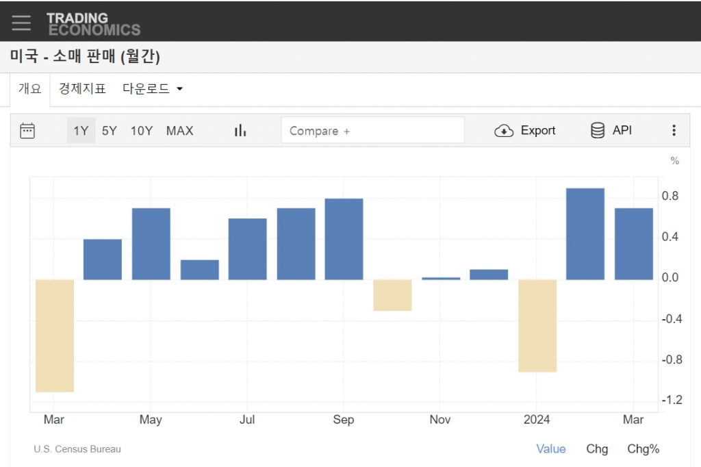 미국의 3월 소매판매가 전월비 0.7% 증가해 전문가 예상치 0.4%를 크게 상회했다. 올 초 잠시 움츠렸던 소비가 분기말에 다시 살아났다고 볼 수 있다. 이날 미국 상무부는 3월 변동성이 높은 자동차 품목을 제외한 소매판매는 전월비 1.1% 증가했다고 밝혔다. 당초 예상치는 0.5%였는데 이를 두 배 이상 웃돈 셈이다.