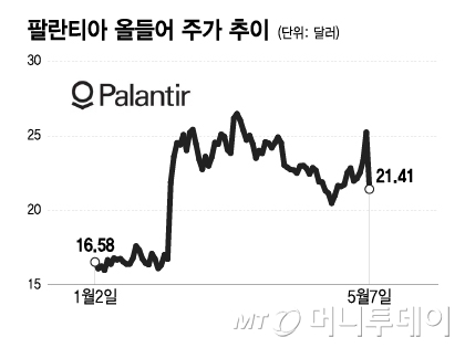 AI 데이터 분석 소프트웨어 회사인 팔란티어 테크놀로지스는 지난 6일(현지시간) 장 마감 후에 애널리스트들의 전망치를 뛰어넘는 올 1분기 실적을 발표하고 올 2분기와 올해 전체 실적 가이던스를 상향 조정했다. 하지만 7일 주가는 15.1% 폭락했다.