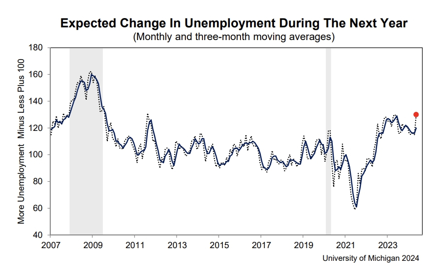 매크로 연구소의 수석 투자 전략가인 브라이언 닉은 "인플레이션이 올바른 방향으로 움직이지 않는다는 점을 데이터가 나타내고 있다"며 "소비자들은 실물경제가 훨씬 더 나쁘고 앞으로도 더 좋지 않아질 것이라고 생각하고 있기에 주식이나 채권에 있어서는 긍정적인 요소가 아니다"고 풀이했다.
