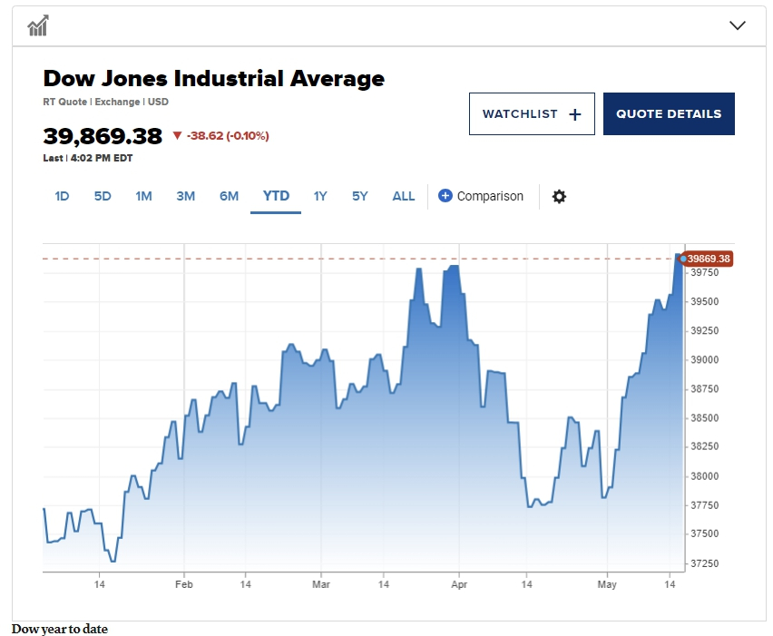 16일(현지시간) 뉴욕증시에서 다우존스 지수는 전거래일보다 38.62(0.1%) 내린 39,869.38을 기록했다. S&P 500 지수도 11.05포인트(0.21%) 하락한 5,297.1에 거래를 마쳤다. 나스닥은 44.07포인트(0.26%) 떨어져 지수는 16,698.32에 마감했다.