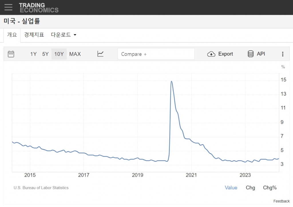 미국의 실업률은 1960년대 후반 27개월 연속 4% 미만이었다. 하지만 그 이전 1950년대 초에 한 달 더 긴 28개월 이상 실업률이 4% 이하를 기록했다. 앨런은 "특히 낮은 실업률은 기업이 근로자를 고용하기가 더 어려워지고 기존 직원의 생산성을 높이는 데 더 집중하게 되면서 종종 생산성 향상을 가져왔다"며 "우리 시대의 AI 성장을 고려할 때 이는 앞으로 몇 년 동안 경제 성장에 어느 정도 상승 가능성이 있음을 시사한다"고 말했다.