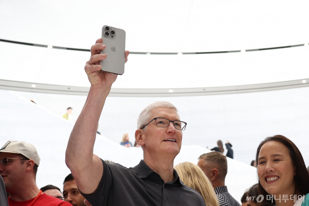 ![[쿠퍼티노=AP/뉴시스] 팀 쿡 애플 최고경영자(CEO)가 10일(현지시각) 캘리포니아 쿠퍼티노 애플 캠퍼스에서 열린 세계개발자회의(WWDC) 2024에서 새 제품을 발표하고 있다. 2024.06.11. /사진=권성근](https://thumb.mt.co.kr/cdn-cgi/image/f=avif/21/2024/06/2024061205374240079_2.jpg)