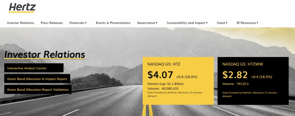 렌터카 기업인 허츠 글로벌은 채권 발행 규모를 10억 달러로 늘린 후 주가가 15.95% 상승했다. 이들은 차량 교체를 위해 7억 5000만 달러를 모금할 계획을 세웠다.