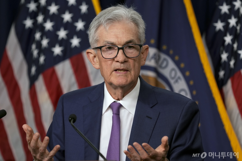 ![[워싱턴=AP/뉴시스] 제롬 파월 미국 연방준비제도(연준·Fed) 의장이 1일(현지시각) 워싱턴 연준에서 기자회견하고 있다. 파월 의장은 "인플레이션이 목표치인 2%를 향해 둔화하고 있다는 확신이 아직도 부족하다"라며 "적절한 기간 동안 현재의 연방기금 금리를 유지할 준비가 돼 있다"라고 밝혔다. 2024.05.02. /사진=민경찬](https://thumb.mt.co.kr/cdn-cgi/image/f=avif/21/2024/07/2024070223470073970_1.jpg)