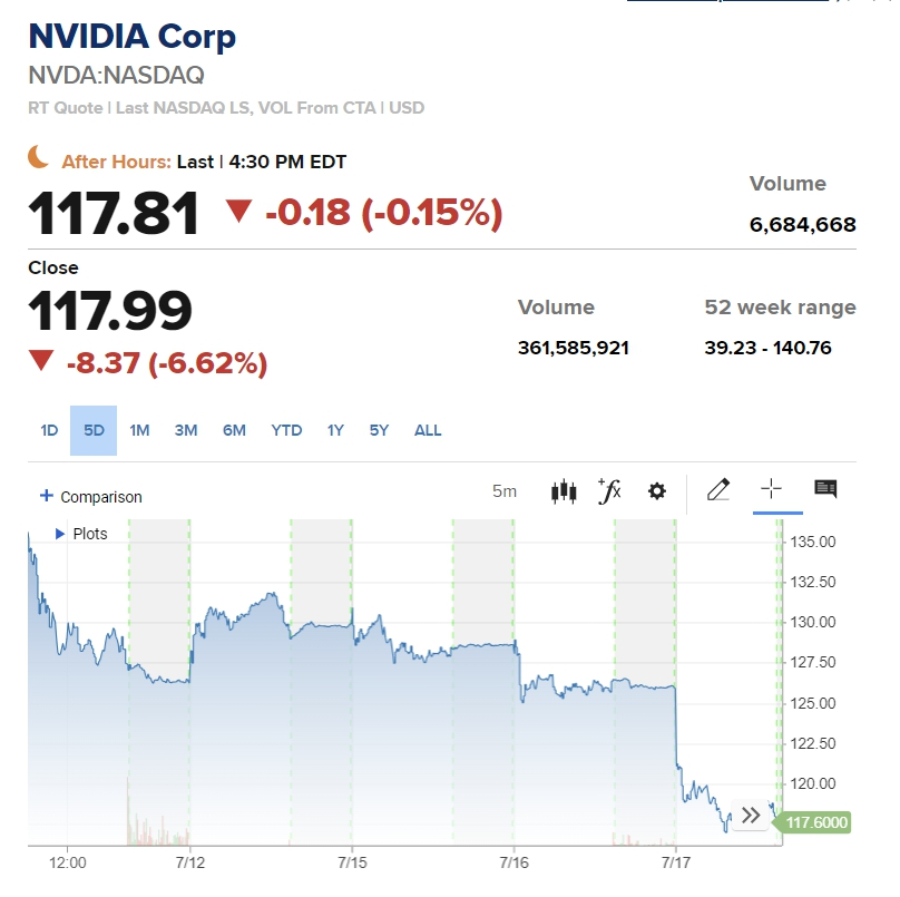 빅테크 기술들은 상반기 상승세를 일부 반납하면서 하락의 명분을 얻었다. 애플이 2.53%, 넷플릭스가 1.35%, 마이크로소프트가 1.33% 하락했다. 매그니피센트 7 가운데 메타는 5.68%나 급락했다. 하지만 반도체주의 하락은 더 심각했다. 상반기 최대 AI(인공지능) 수혜주 엔비디아는 이날 6.64%나 급락했고, 미국에 상장된 TSMC 주가도 2% 이상 하락했다.