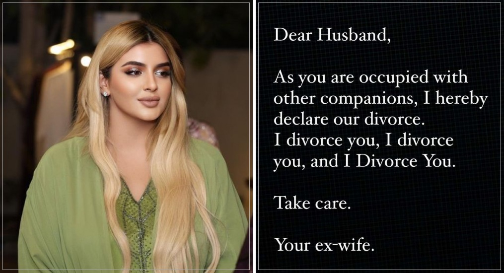 공주는 "존경하는 남편, 나는 당신과 이혼한다, 이혼한다, 그리고 이혼한다. 잘 지내세요. 당신의 전 부인이"라고 적었다.