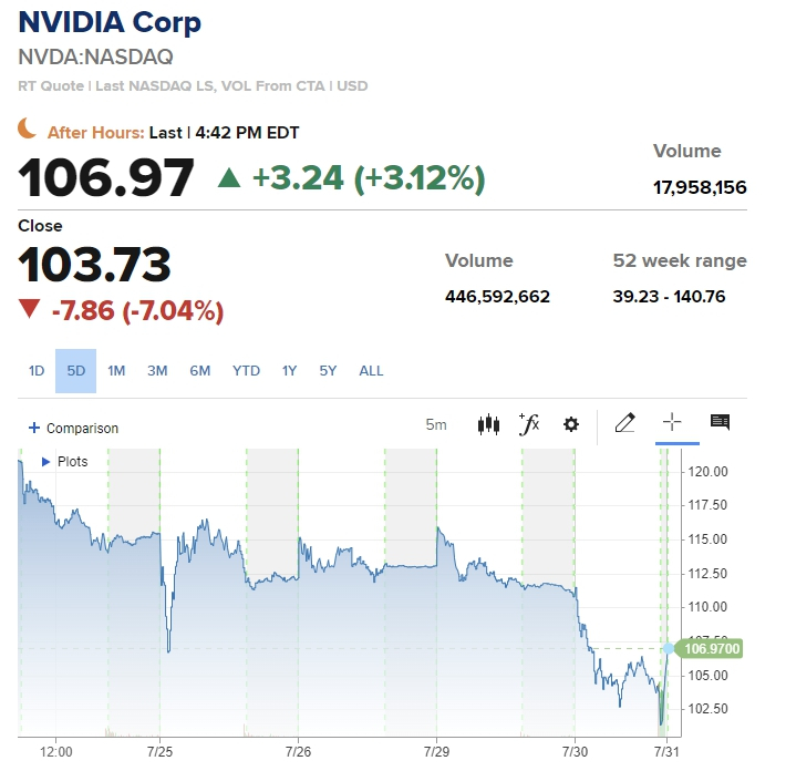 이날 AI(인공지능) 랠리 대장주인 엔비디아는 7.04%나 급락하면서 다시 상반기 오름폭을 잃었다. 마이크로소프트(MS) 역시 0.89% 빠졌고, 메타(-0.54%)와 넷플릭스(-0.7%), 아마존(-0.81%)도 약세를 보였다. 이날 오토파일럿의 사고 영상이 노출된 테슬라도 4.08%나 급락했다.