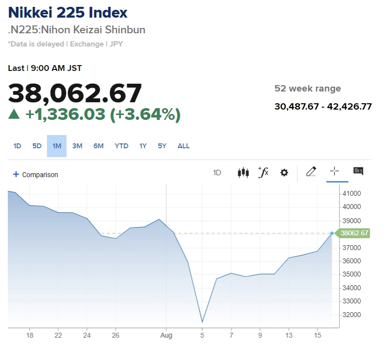 8월 초인 지난주 월요일 일본 도쿄증시의 벤치마크인 닛케이 225 지수는 하루 만에 12.4% 폭락했는데, 이는 1987년 블랙 먼데이 이후 최악의 하루 사례로 평가된다. 그리고 일본의 급락은 전세계적으로도 도미노 효과를 촉발했다.