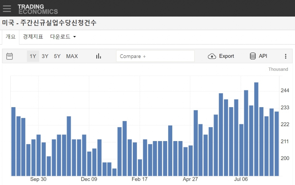 미국의 지난주 신규 실업수당 청구건수가 전주보다 줄어 하반기 고용침체에 대한 우려가 다소 줄었다. 이날 미국 노동부는 지난주(18~24일) 신규 실업수당 청구 건수가 23만 1000건을 기록해 전주에 비해 2000건 감소했다고 밝혔다. 다우존스가 집계한 전문가 전망치는 23만건이었는데 이보다는 다소 높지만 예상치에 거의 부합한 결과다.