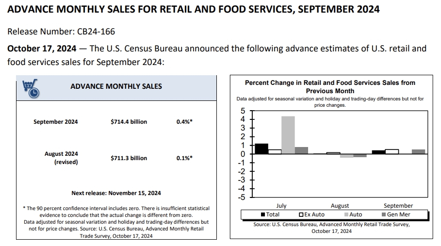 변동성이 큰 자동차 판매를 제외한 매출 증가율은 전월비 0.5% 상승을 기록해 예상치(0.1%)를 크게 웃돌았다. 상무부에 따르면 미국 경제 활동의 약 3분의 2를 담당하는 소비자들은 여전히 지출을 늘리고 있으며, 여름 내내 약화 징후가 보였던 노동시장도 경착륙 수준은 아닌 것으로 판단된다.