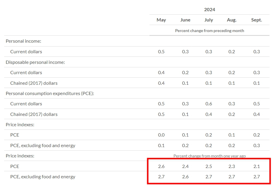 미국의 9월 물가지수가 전년비 2.1% 상승해 중앙은행이 목표로 하는 2%선에 바짝 다가섰다. 11월 초로 예정된 FOMC(공개시장위원회)에서도 금리인하가 기대되고 있다. 이날 미국 상무부는 9월 개인소비지출(PCE) 물가지수 상승률이 전년비 2.1% 수준으로 집계됐다고 밝혔다. 전월비로는 0.2% 오른 결과이며 두 가지 기준 모두에서 다우존스가 예상한 기대치에 부합한다.