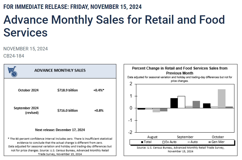 10월에 자동차와 부품을 제외한 소매 매출은 0.1% 상승했는데, 이는 예상보다 다소 낮은 수치였다. 건축 자재와 자동차 부품, 휘발유를 제외한 매출은 0.1% 하락했는데 경제학자들이 예측했던 0.3% 상승을 크게 밑돌았다.
