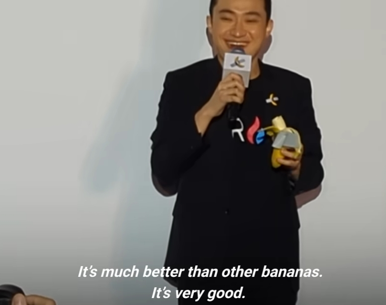 그는 바나나를 다 먹은 뒤 "다른 바나나보다 훨씬 맛있다"면서 웃어 보였다.